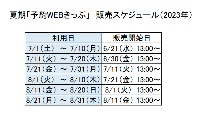 2023年5月31日 685 × 388 「予約WEBきっぷ」販売日程