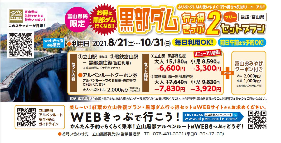 「富山・立山駅から長野・信濃大町へ通り抜け」または「アルペンルート内でご宿泊」予定のお客様へ