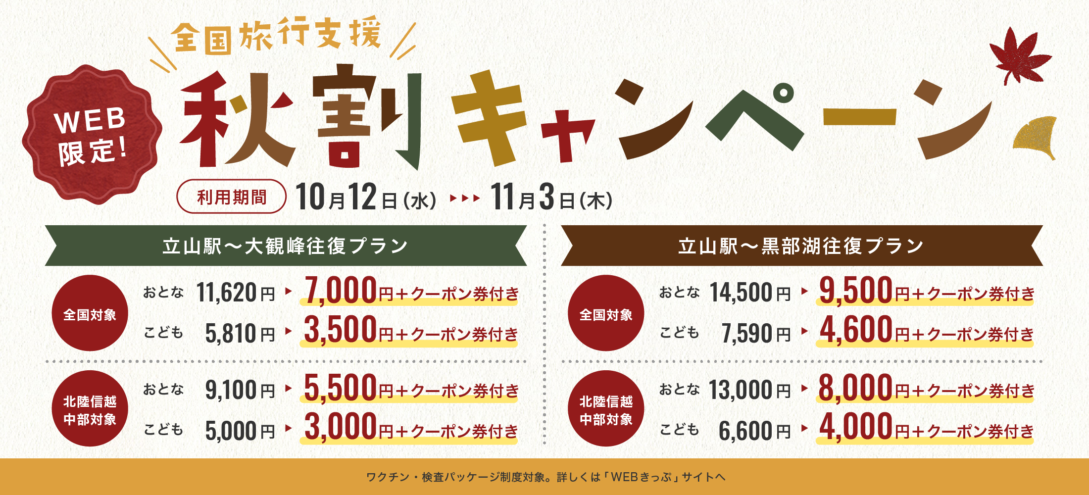 【秋の早割10】ご利用について