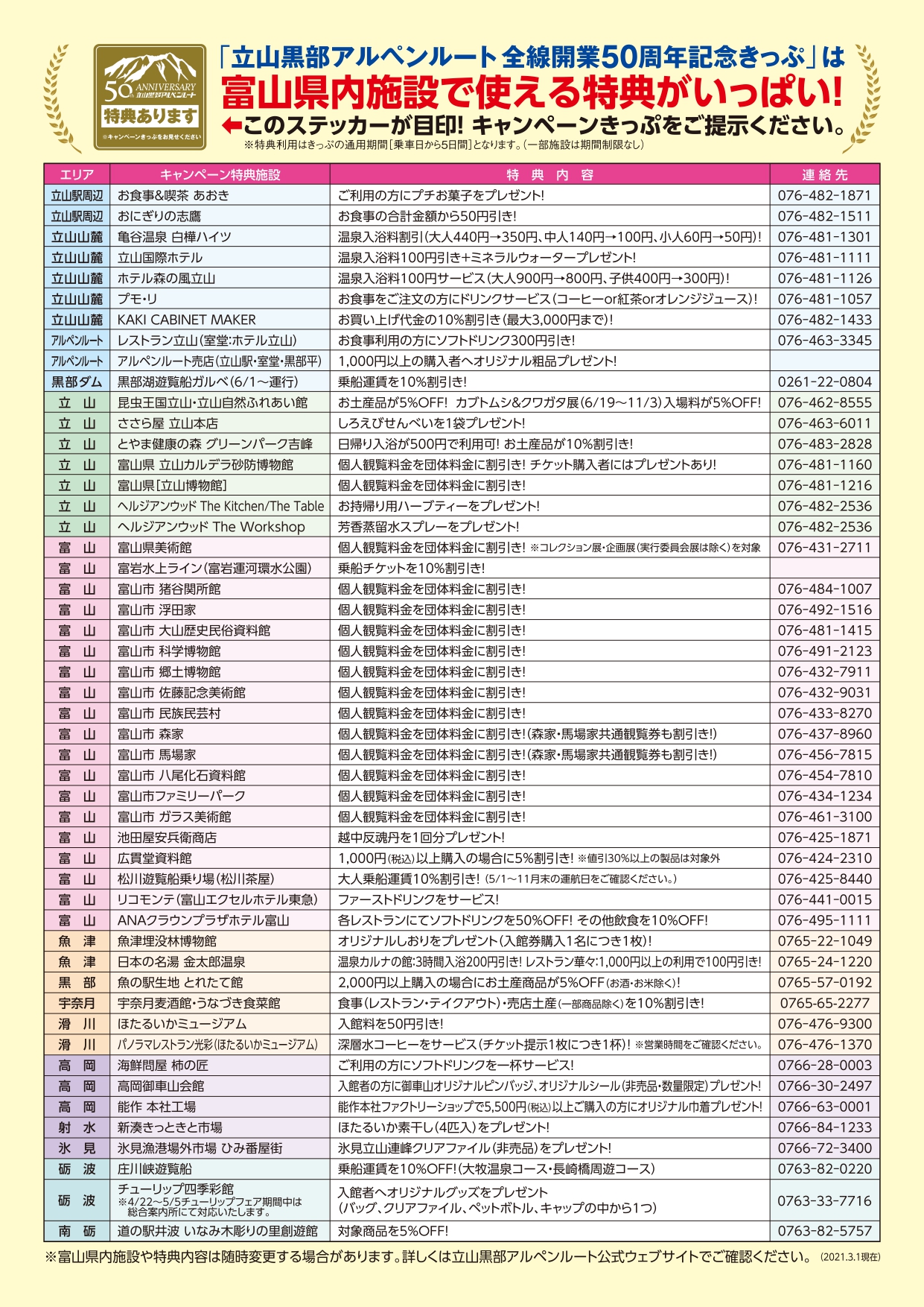 • 2021年 立山黒部アルペンルート 全線開業50周年