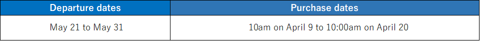 Due to popular demand, we will extend the sale of ”Pre sale!One Way WEB Tickets” for travel between May 21st and 31st.