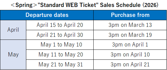Standard WEB Ticket for April and May will be on sale from 3pm on March 13 onwards.